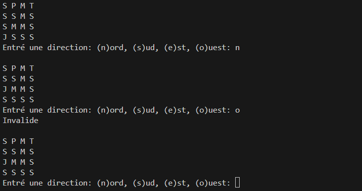 Assurez-vous que la nouvelle position calculée est valide (le joueur ne peut pas sortir de la carte ou traverser des murs). Si la position est valide, mettez à jour la position du joueur. Sinon, affichez un message d'erreur et redemandez au joueur une nouvelle position.